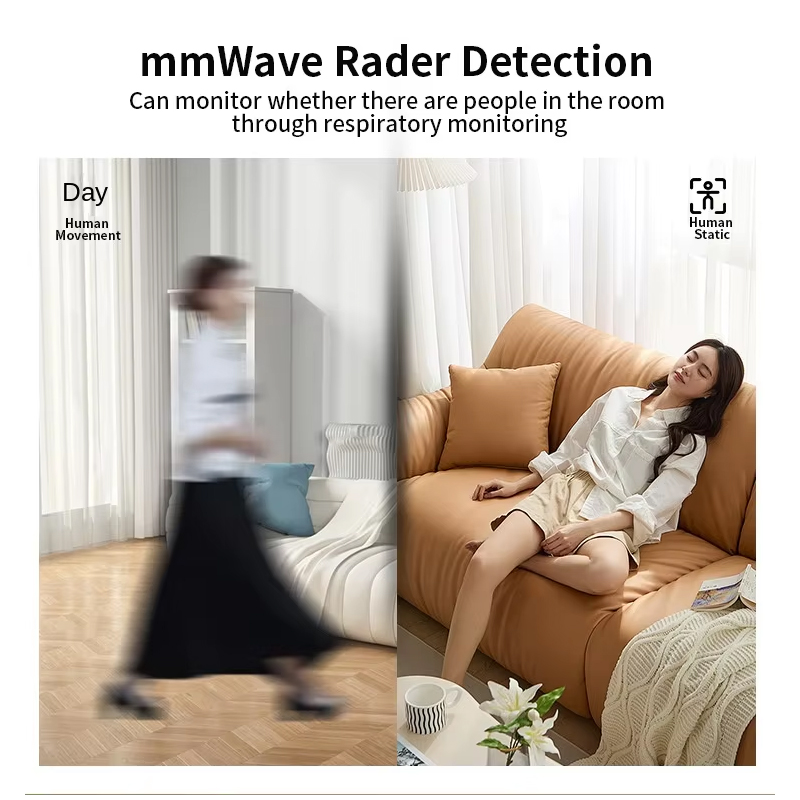 True Presence Detection: mmWave radar senses micro-movements, reliably detecting stationary occupants for unparalleled automation.